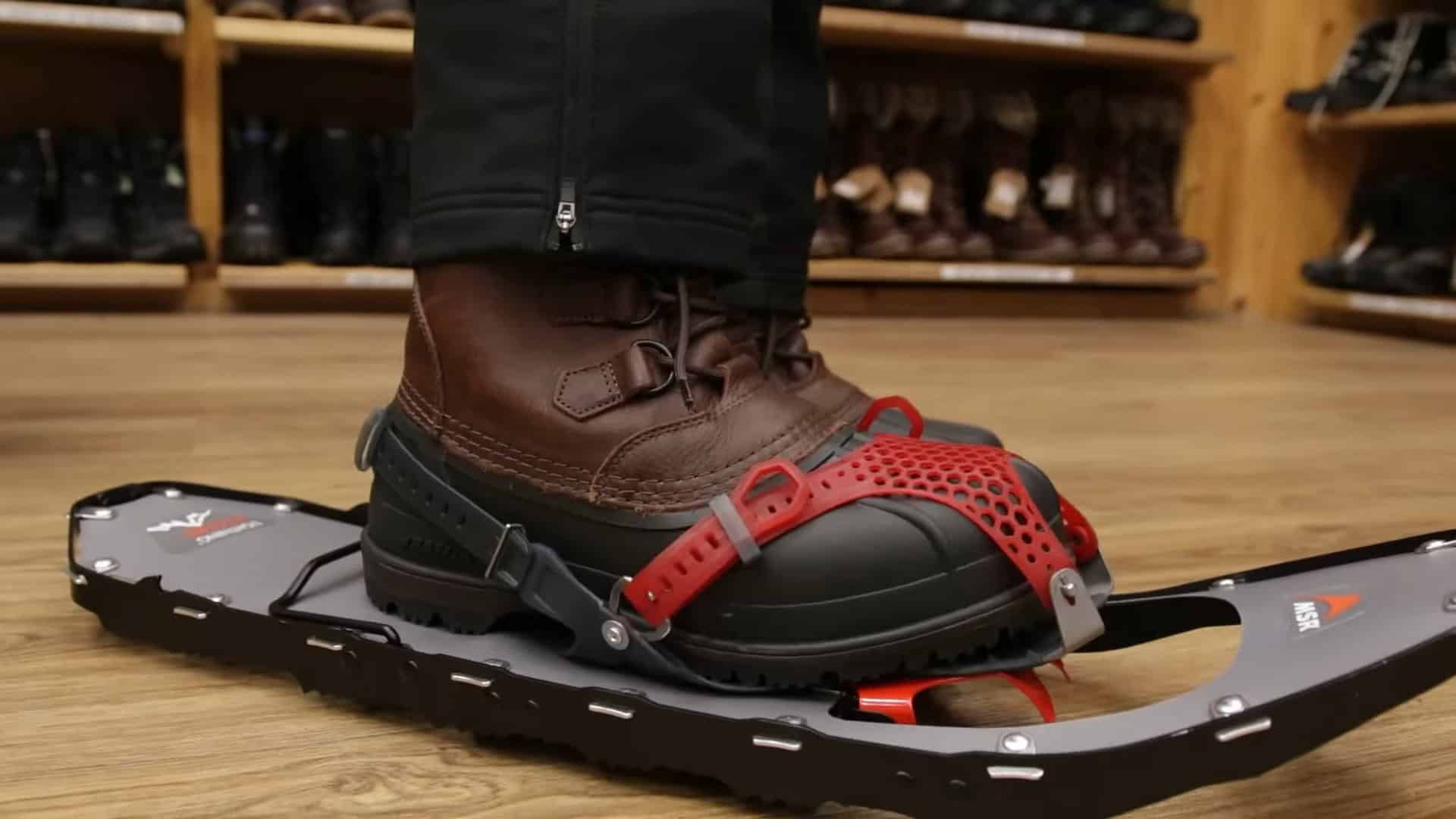 C’est dû au fait que la plupart des modèles de raquettes à neige modernes comportent une semelle à la pointure réglable : il suffit de l’ajuster à votre longueur de pied, et le tour est joué!