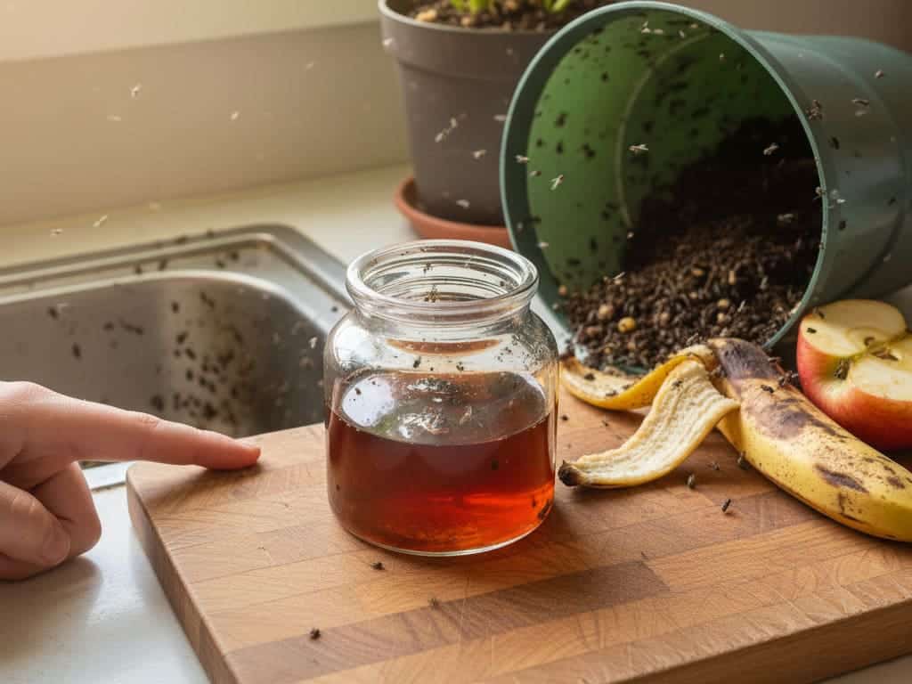 Mais sans traiter la source (où elles pondent), tu gagnes un répit, pas la victoire. Les mouches pondent dans les matières organiques humides : drains graisseux, bac à compost mal fermé, terre humide des plantes, fruits trop mûrs.