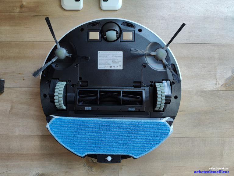 Le passage à la serpillière est simple : il suffit de remplir d’eau le réservoir du bac de collecte, puis de fixer la plaque de serpillière sous le robot.