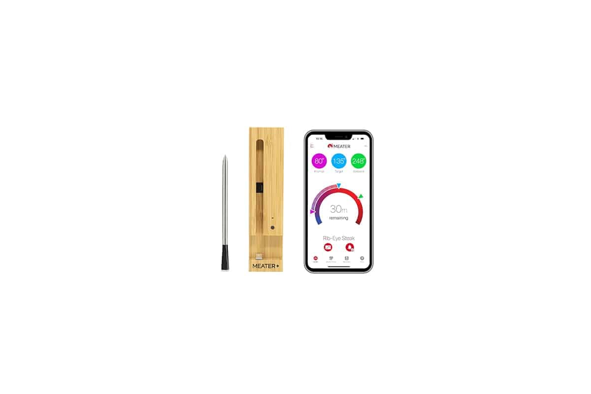 Si vous cherchez un thermomètre à sonde connecté haut de gamme, vous pouvez avoir envie d’une solution qui bénéficie d’une haute technologie tout en étant le plus compact possible. C’est ce que vous propose le Meater Plus.