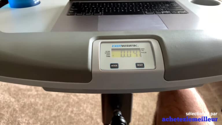 L’écran LCD de la console est assez grand (5,1*2,5 cm/2,2*0,6 po) pour que vous puissiez lire sans difficulté les différentes données prises en compte, à savoir la vitesse, la distance parcourue, le temps passé à pédaler, les calories brûlées, ainsi que votre pouls. Il fonctionne avec 2 piles AA qui sont incluses.