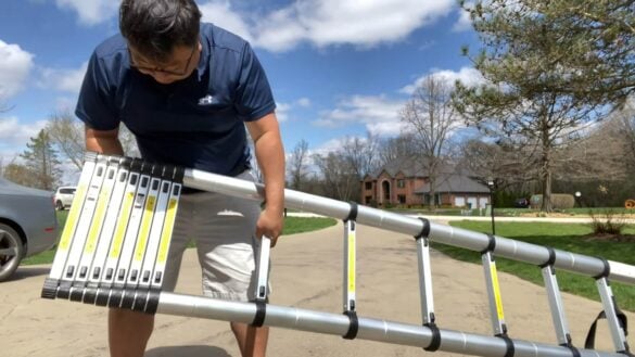 L’échelle télescopique Ohuhu est assez compacte et facile à transporter. Elle se déplie jusqu’à 3,8 m (12,5 pieds) de long. Les embouts de pieds sont antidérapants. Par contre, ils sont en plastique et non en caoutchouc et pourront glisser sur des surfaces plates particulièrement lisses.