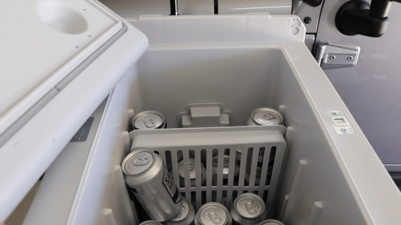 Vous pouvez stocker jusqu’à 57 canettes dans cet appareil, sa contenance étant de 34 l, soit 36 qt. C’est généralement assez pour avoir de l’eau et des gourmandises disponibles lors des trajets en voiture, ou pour conserver des petits plats pour la famille lorsque vous êtes en vacances.