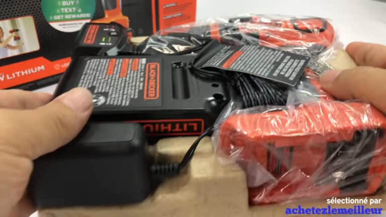 Dans la boite, vous trouverez également deux batteries 20 V Max et leur chargeur ; vous pouvez ainsi en recharger une tout en utilisant l’autre.