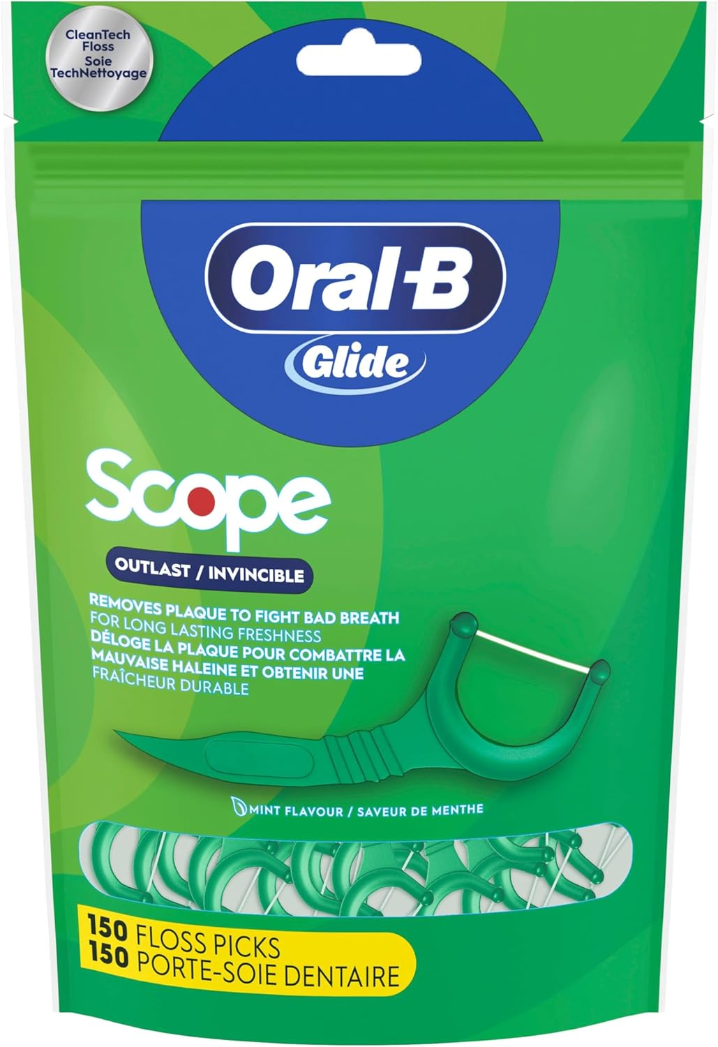 PRIX RECORD à 7,00$ (-30 %) pour 150 unités de soie dentaire Oral-B Glide Complete avec Scope Outlast. La menthe rafraîchit, la soie glisse! Bref, pour une haleine fraîche et une dentisterie maison, t’en as pour ton argent! 🦷🌱
