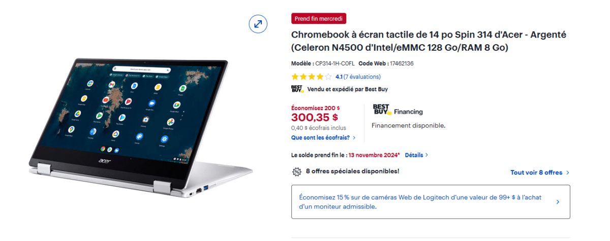 Besoin d’un portable pratique et polyvalent pour gérer facilement toutes tes tâches ? Le Chromebook Acer Spin 314 est en ce moment à prix réduit avec un rabais de 200$ ! 👏