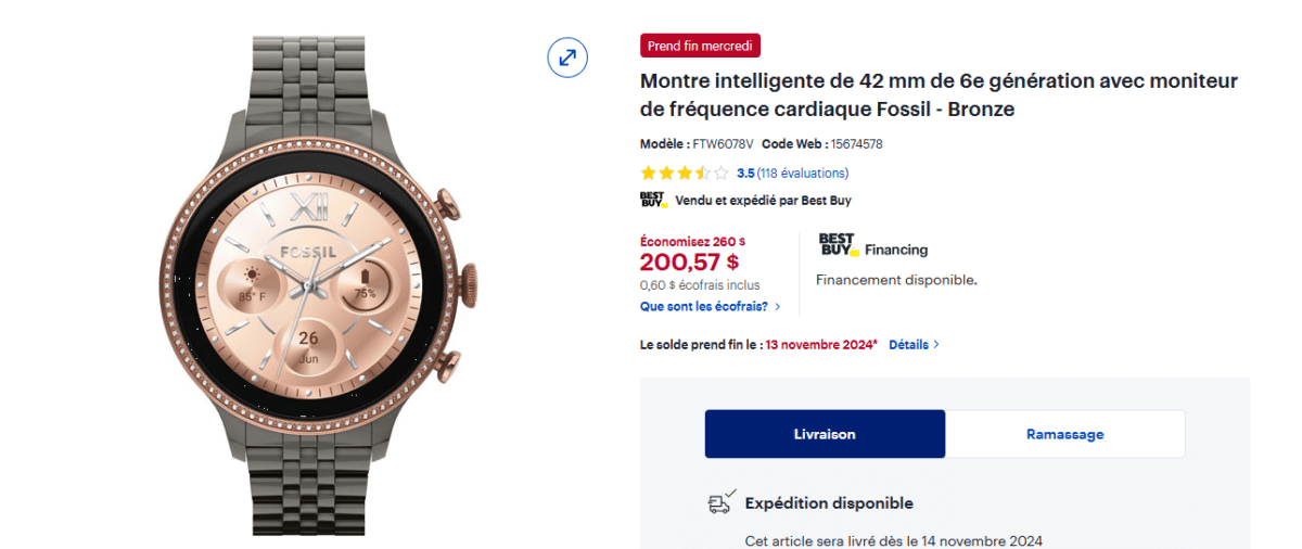 Envie d’une montre qui suit ton rythme actif avec style ? La montre intelligente Fossil 6e génération de 42 mm en bronze est à 260$ de rabais. Profite de cette aubaine et booste ton quotidien ! 🚀