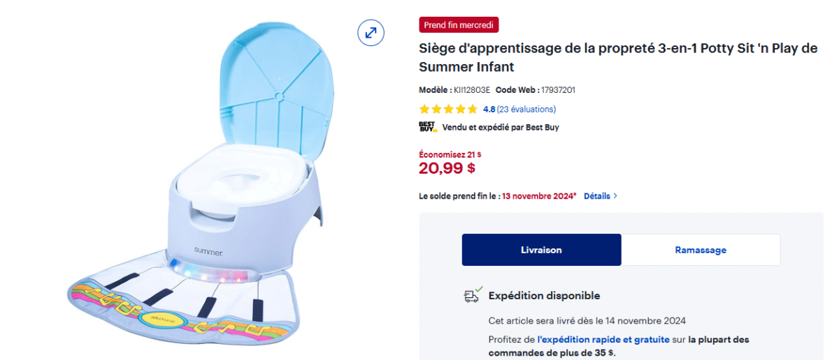 Ton tout-petit est prêt pour l’aventure de l’apprentissage de la propreté? Le siège Potty Sit ‘n Play de Summer Infant le rendra amusant et engageant! À moins de 21$, c’est le moment de te lancer! 🎉