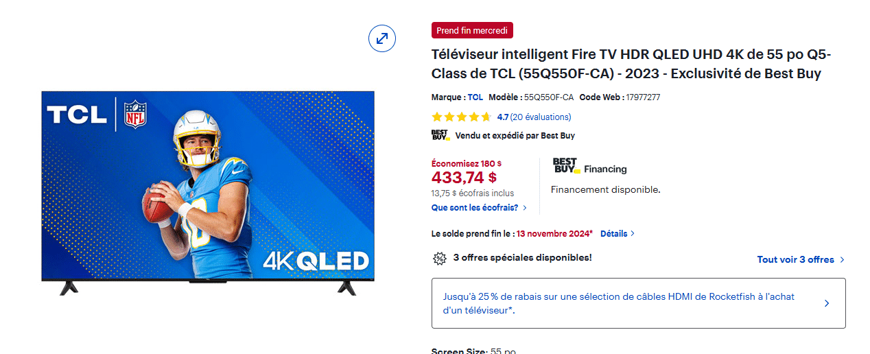 🟦 MOINS DE 434$ POUR LE TCL QLED 55 PO – NOUVEAU MEILLEUR PRIX! 🟦