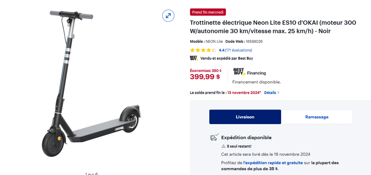 Profite de ce rabais inédit sur la trottinette électrique Neon Lite ES10 d’OKAI, maintenant à 399,99$! 🚨 Un must pour les amateurs de mobilité urbaine.
