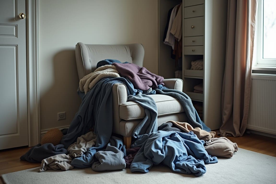 Elle vivait exactement la même affaire de son côté. Des vêtements portés une fois, qu’elle ne voulait ni laver, ni replier. Et une chaise qui servait de station d’accueil permanente pour son linge « entre deux brassées ».