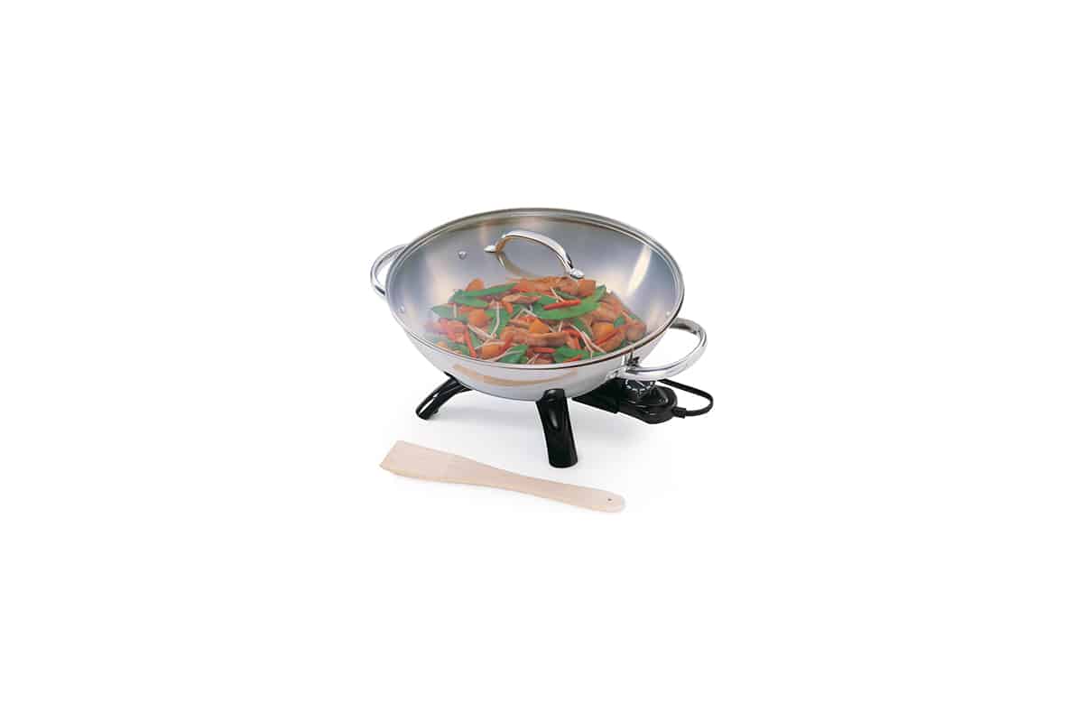 J’ai repéré ce wok électrique en acier inoxydable disponible en ligne, je n’ai pas hésité à l’acheter. Il a une puissance de 1 500 watts et le contrôle de la chaleur est parfait. A la fin de la cuisson, il peut rester quelques résidus collants au fond. Pour régler ce problème, il suffit de remplir le wok d’eau et de la faire bouillir à 350°F. Ensuite, ce wok est simple à nettoyer. C’est très pratique et facile de sauter une multitude d’aliments.