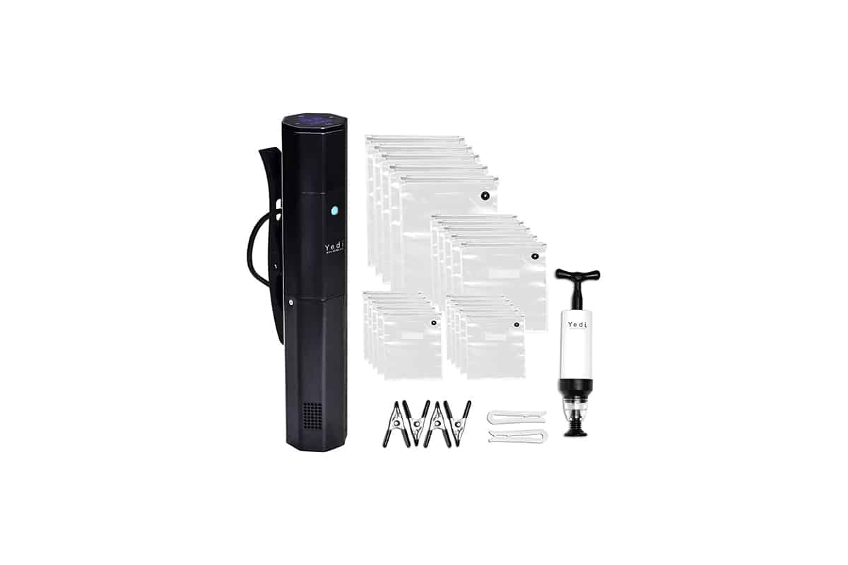 Afin d’obtenir de bons résultats sous vide, il vous faut généralement vous procurer une machine à sceller sous vide. Cet achat supplémentaire n’est pas nécessaire si vous faites l’acquisition du Yeti Infinity! En effet, cet appareil est fourni avec une pompe à air qui s’adapte aux sacs de cuisson sous vide également fournis. Grâce à cet équipement, vous pourrez faire le vide dans les sacs sans souci. Cela demande par contre une certaine habitude.